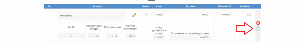 Ако е маркирано полето „Само за артикул“ този документ ще бъде достъпен от най– в дясно на всеки един ред в операцията при добавяне на артикул.