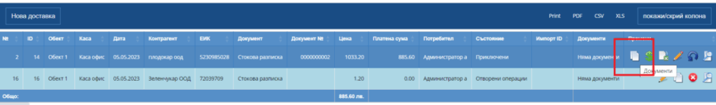 Документите, които се подготвят могат да бъдат обвързани с операция или с артикул. Какво означава това? Ако е избрана операция– документа ще се визуализира в меню документи (икона в най– дясната колона в списъците с операции).