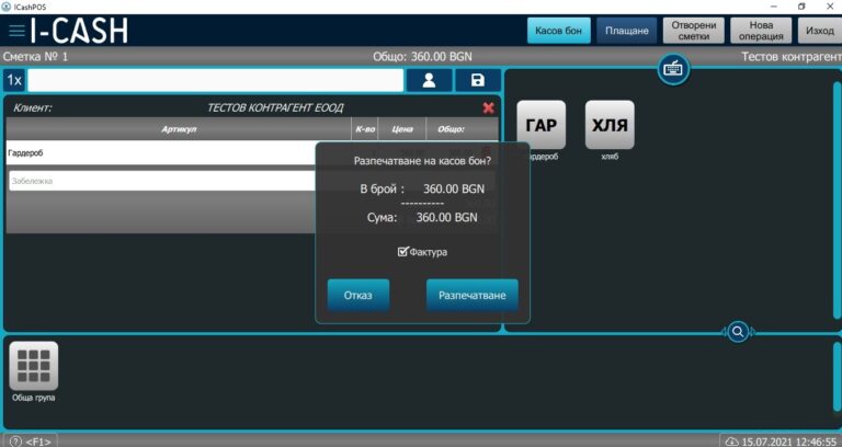 I-CASH Ви дава възможност да създадете документ в момент на продажба. По-подробна информация, относно процеса на продажба с фактура можете да прочете в нашето ръководство за потребителя.